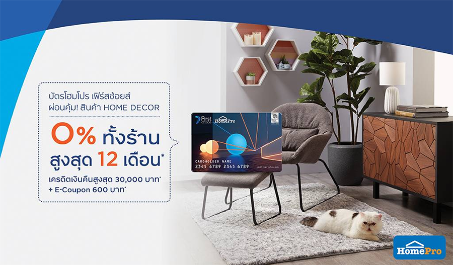 ผ่อนสินค้าที่โฮมโปร ผ่อนเครื่องใช้ไฟฟ้า 0% ทั้งร้าน สูงสุด 12 เดือน กับบัตรโฮมโปร เฟิร์สช้อยส์ พร้อมรับเครดิตเงินคืนสูงสุด 30,000 บาท และรับ E-Coupon ส่วนลด 600 บาท