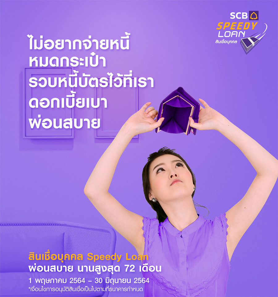 สินเชื่อบุคคล Speedy Loan รวบหนี้กับ SCB ไม่ต้องจ่ายหนี้หมดกระเป๋า ดอกเบี้ยเบา ผ่อนสบาย