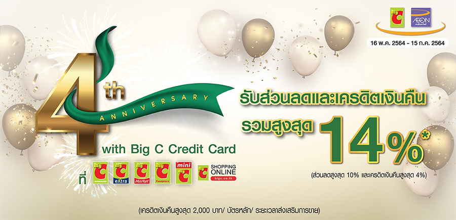 4TH ANNIVERSARY BIG C CREDIT CARD - ระยะเวลา : 16 พฤษภาคม - 15 กรกฎาคม 2564 (61 วัน)