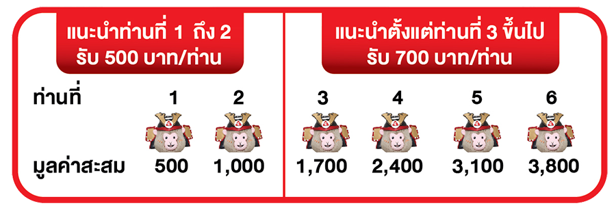 - แนะนำท่านที่ 1 ถึง 2 รับเครดิตเงินคืน มูลค่า 500 บาทต่อท่าน
