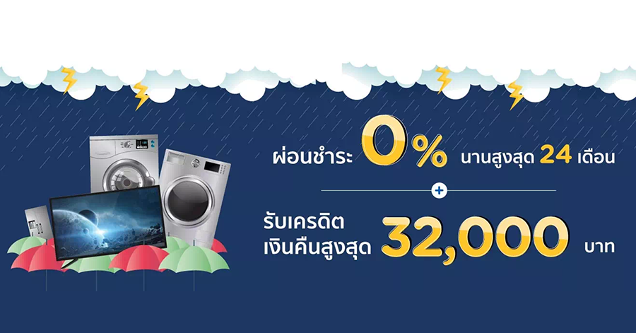 หน้าฝนนี้มาช้อปเครื่องใช้ไฟฟ้ากับบัตร KTC ผ่อน 0% นานสูงสุด 24 เดือน พร้อมรับเครดิตเงินคืนคุ้ม