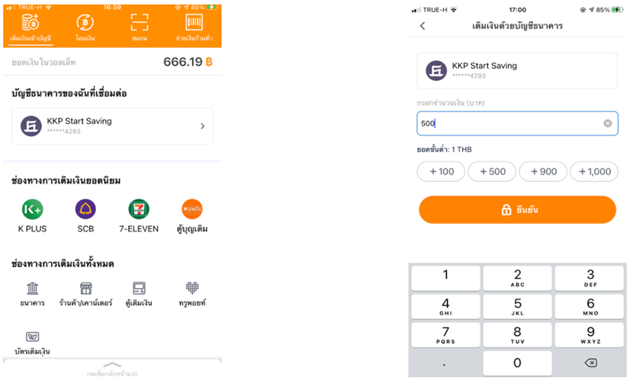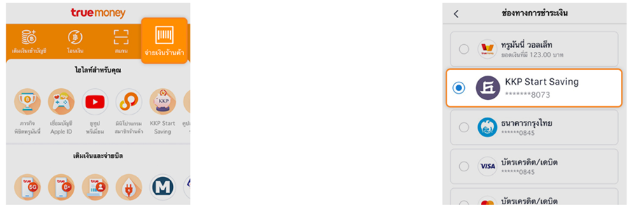 เติมเงินเข้าบัญชี TrueMoney Wallet โดยเชื่อมกับบัญชี KKP Start Saving