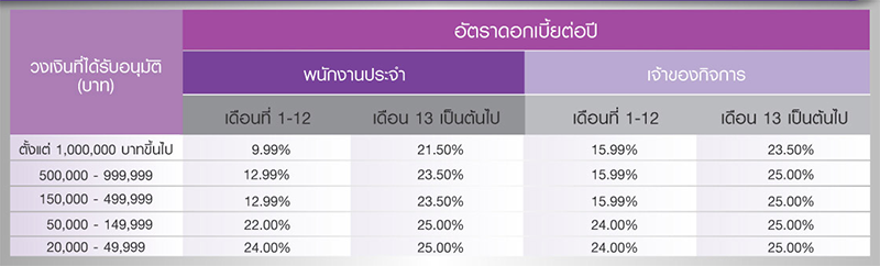 - ไม่มีค่าธรรมเนียมการใช้วงเงินและการจัดการเงินกู้