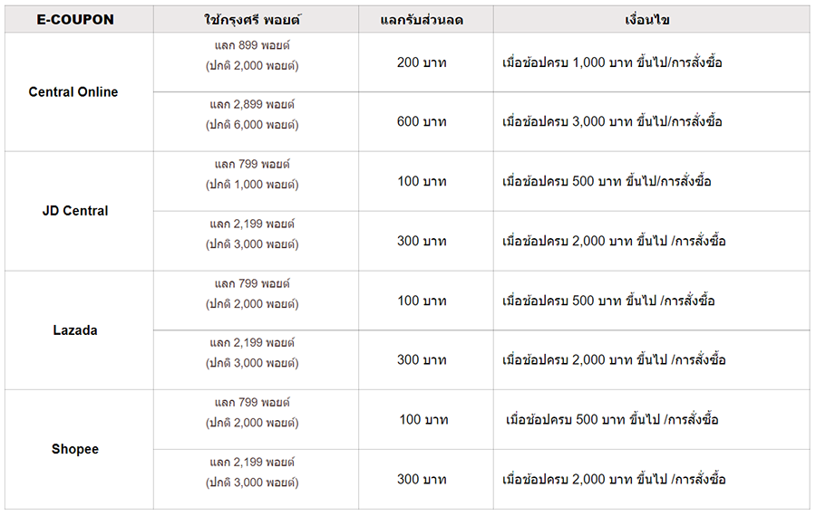 - สามารถใช้ "เป็นส่วนลด" / "แลกสินค้า/บริการ" แอปพลิเคชัน หรือ เว็บไซต์ ที่ ร่วมรายการ