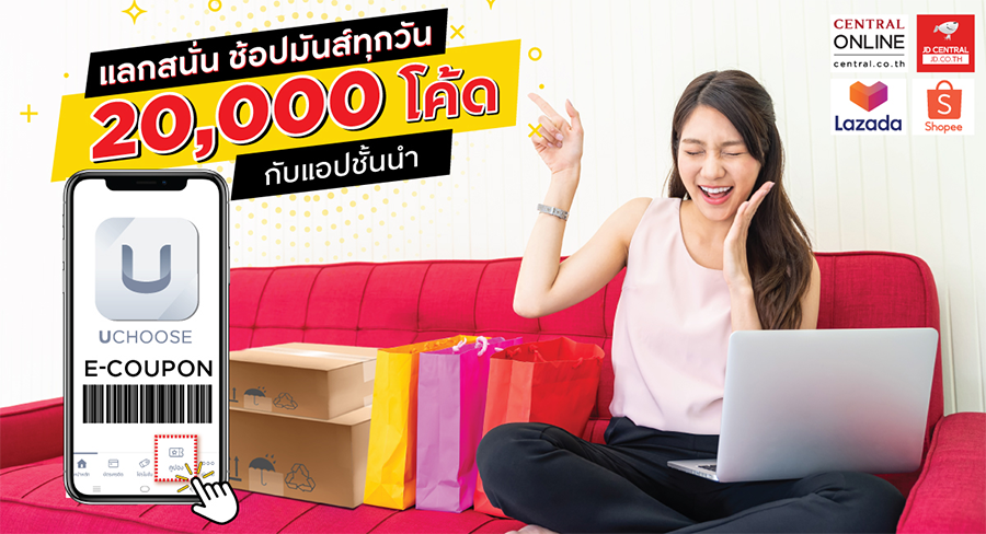 พอยต์แบ่งเบา กับ บัตรเครดิต กรุงศรี แลกพอยต์รับโค้ดส่วนลด ช้อปออนไลน์ กับแอปชั้นนำกว่า 20,000 โค้ดตลอดรายการ ผ่านเมนูคูปองบน UChoose เซฟพอยต์สูงสุด 55%*