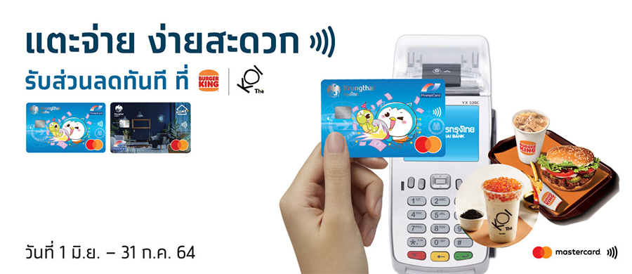 - รับส่วนลด 40 บาท ที่ BURGER KING เมื่อแตะจ่ายผ่านบัตรฯ ตั้งแต่ 250 บาทขึ้นไป/เซลล์สลิป