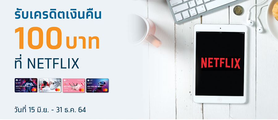 - ลูกค้าจะได้รับเครดิตเงินคืน 100 บาท เมื่อผูกบัตรเดบิต Krungthai Fun และชำระค่าแพ็กเกจรายเดือน NETFLIX ด้วยบัตรเดบิต Krungthai Fun ติดต่อกันเป็นระยะเวลา 3 เดือน