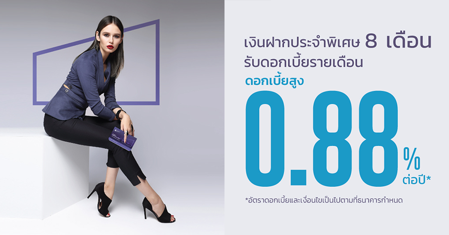 เงินฝากประจำพิเศษ 8 เดือน บัญชีสำหรับลูกค้าบุคคลธรรมดา รับดอกเบี้ยรายเดือนแน่นอน