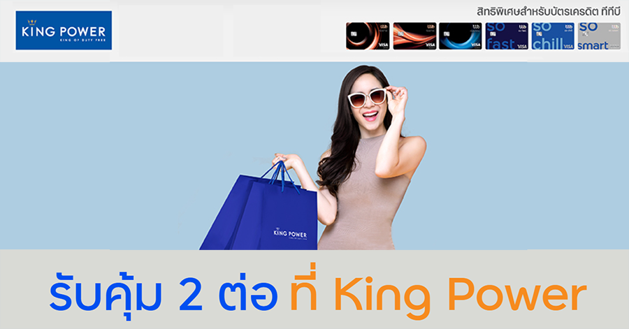 โปรโมชั่นสำหรับลูกค้าผู้ถือบัตรเครดิตทีทีบี บัตรเครดิตทีเอ็มบี และบัตรเครดิตธนชาต ไม่บินก็ช้อปได้ที่ King Power รับคุ้ม 2 ต่อ