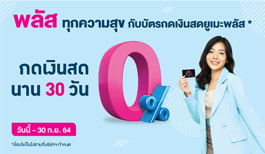 พลัสทุกความสุข กับบัตรกดเงินสดยูเมะพลัส เพียงสมัคร และอนุมัติเลือกรับเลย วันนี้ - 30 ก.ย. 64