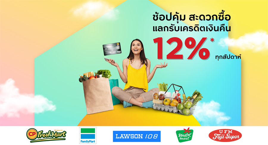 ลูกค้าบัตรเครดิต กรุงศรี ช้อปคุ้ม ร้านสะดวกซื้อ และมินิมาร์ท แลกรับเครดิตเงินคืน 12%*