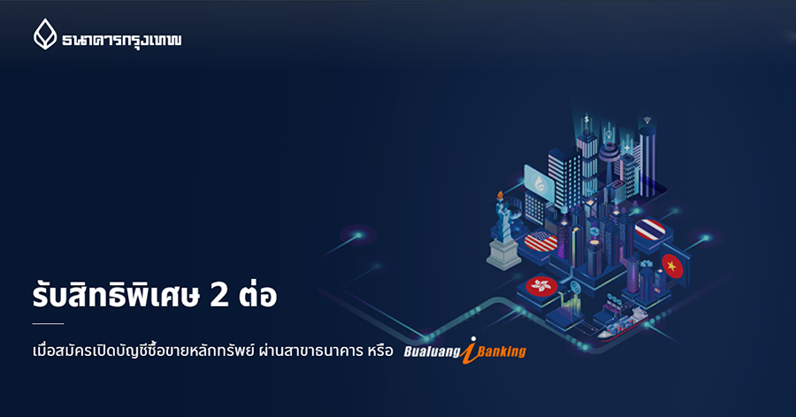 สมัครเปิดบัญชีซื้อขายหลักทรัพย์ ผ่านสาขาธนาคาร หรือ Bualuang iBanking รับสิทธิพิเศษ 2 ต่อ