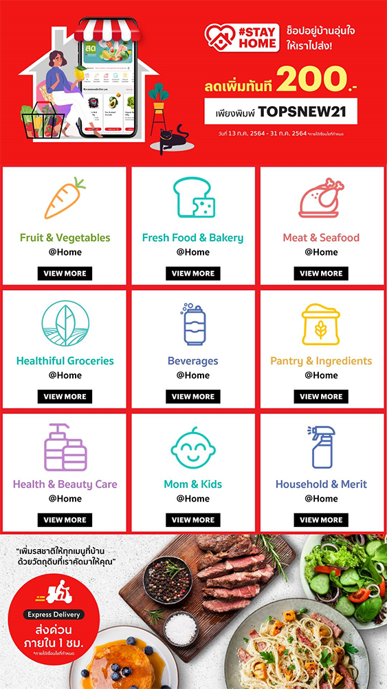 นอกเหนือจากนี้ ในช่วงที่ผู้บริโภคต้องใช้เวลาอยู่ที่บ้าน เราได้จัดเตรียมสินค้าอาหาร และสินค้าอุปโภคบริโภค บนแอปพลิเคชัน Tops Online - Food & Grocery ซูเปอร์มาร์เก็ตออนไลน์อันดับ 1 ของไทย อัดแน่นไปด้วยสินค้าต่างๆ ไม่ว่าจะเป็นอาหารที่สดใหม่ อาหารพร้อมทาน ชุดทำกับข้าวเองที่บ้าน ขนมและสแน็กต่างๆ จากทั่วโลก สินค้าเพื่อคนรักสุขภาพ Healthiful ผักผลไม้สดที่ส่งตรงจากเกษตรกร สินค้า Best Selling มากกว่า 20,000 รายการ และสินค้า Best Deal ที่คุ้มค่าคุ้มราคา พร้อมส่งตรงความสดใหม่และสินค้าคุณภาพถึงหน้าบ้าน ไม่เพียงเท่านั้นสมาชิก The 1 ยังสามารถรับดีลสุดคุ้ม พร้อมโค้ดส่วนลดพิเศษต่างๆ อีกมากมายจากแอปพลิเคชัน The 1 และตอบรับไลฟ์สไตล์การจ่ายเงินแบบใหม่ไร้สัมผัส กับแอปพลิเคชันดอลฟิน วอลเล็ท ประสบการณ์สุดฟินในการจ่ายเงินแบบง่าย ๆ พร้อมรับสิทธิประโยชน์มากมาย ยิ่งจ่าย ยิ่งได้ แค่ผูกสมาชิก The 1 กับดอลฟิน วอลเล็ท เพื่อไม่พลาดข้อเสนอที่ดีที่สุด ตรงใจ และคุ้มที่สุด เปิดประสบการณ์ช้อปแบบไม่สะดุดได้แล้ว วันนี้!