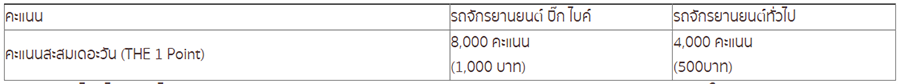 - รับคะแนน The 1 สูงสุด 8000 คะแนน (มูลค่า 1,000 บาท) เมื่อสมัครผ่านช่องทาง ออนไลน์ทุกช่องทาง