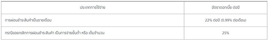 - ไม่มีค่าธรรมเนียมรายปีตลอดอายุการใช้วงเงิน