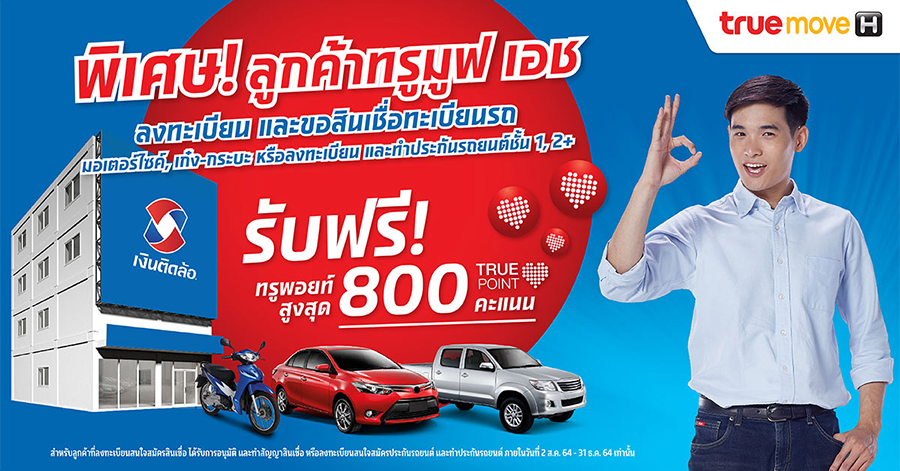 พิเศษ! ลูกค้าทรูมูฟ เอช ลงทะเบียนและขอสินเชื่อทะเบียนรถ รับฟรี...ทรูพ้อยท์สูงสุด 800 คะแนน