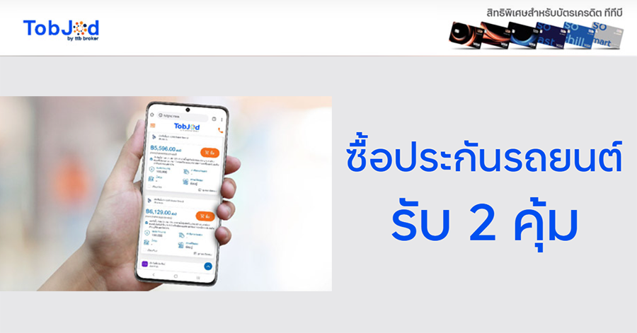 สิทธิพิเศษสำหรับผู้ถือบัตรเครดิตทีทีบี ซื้อประกันรถยนต์สุดคุ้ม ที่ TobJod.com รับคุ้ม 2 ต่อ