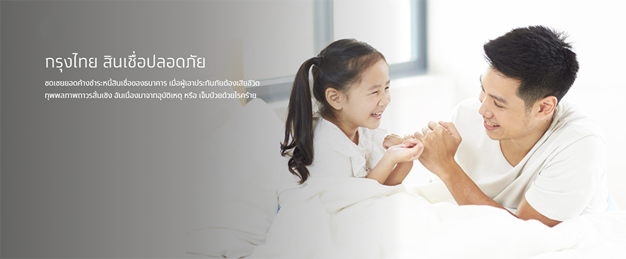 กรุงไทย สินเชื่อปลอดภัย ชดเชยยอดค้างชำระหนี้สินเชื่อ เมื่อผู้เอาประกันภัยต้องเสียชีวิต ทุพพลภาพถาวรสิ้นเชิง อันเนื่องมาจากอุบัติเหตุ หรือเจ็บป่วยด้วยโรคร้าย