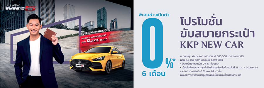โปรโมชั่นขับสบายกระเป๋า ซื้อ All New MG5 วันนี้ รับอัตราดอกเบี้ยพิเศษช่วงเปิดตัว 0% 6 เดือน รีบเลย วันนี้ - 30 ก.ย. 64