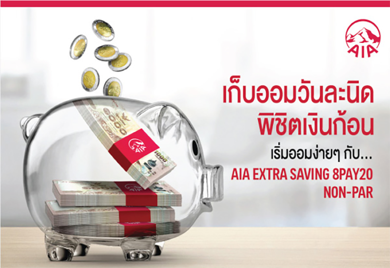 เก็บเงินก้อนกับ AIA EXTRA SAVING 8PAY20 NON-PAR - รับเงินคืนทุกปี สูงสุดถึง 4% ของทุนประกัน (ตั้งแต่ปีที่ 2 เป็นต้นไป)