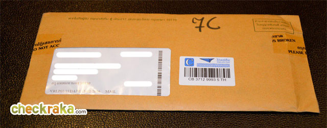 ซองเอกสารสีน้ำตาลที่ส่งจากทางบริษัท บัตรกรุงไทย จำกัด (มหาชน) จ่าหน้าซองถึงเจ้าของบัตรสินเชื่อพร้อมใช้ KTC PROUD อย่างชัดเจน ในรูปแบบของจดหมายลงทะเบียน ต้องมีการเซ็นรับให้เรียบร้อย