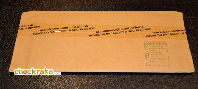 ด้านหลังซองเอกสารสีน้ำตาลปิดมิดชิดเพื่อความปลอดภัยของเจ้าของบัตร ซ้ำด้วยการปิดเทปกาวมีข้อความระบุว่า "กรุณาปฏิเสธการรับหากชำรุดฉีกขาด PLEASE DO NOT ACCEPT IF SEAL IS BROKEN" สร้างความมั่นใจให้กับผู้รับว่าปลอดภัยแน่นอน!!