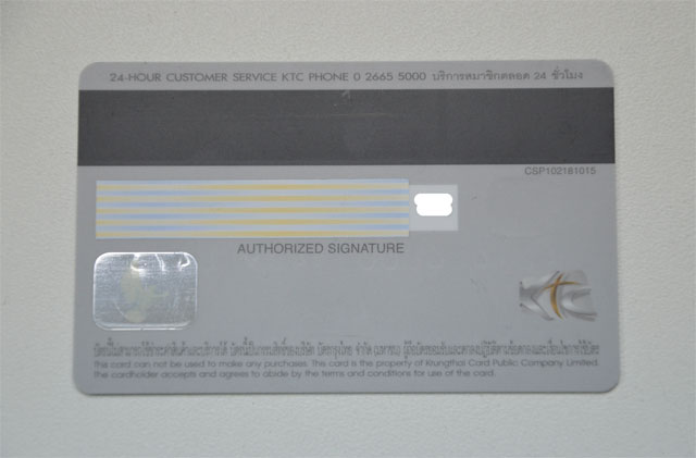 แถบลายเซ็น ควรเซ็นชื่อบนแถบด้านหลังบัตรด้วยปากกาลูกลื่น (Signature Space)