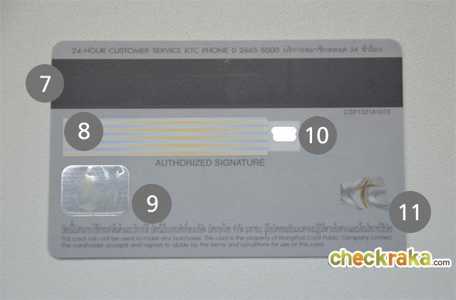 ภาพด้านหลังบัตรกดเงินสดสินเชื่อพร้อมใช้ KTC PROUD ตำแหน่งต่างๆ ในบัตร