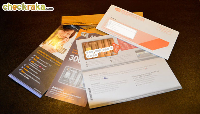 เอกสารด้านในซองสีน้ำตาลนี้จะประกอบไปด้วยคู่มือสินเชื่อพร้อมใช้ KTC PROUD (แผ่นแรกจากซ้าย), แผ่นโฆษณาประชาสัมพันธ์เกี่ยวกับสิทธิประโยชน์ความคุ้มครองอุบัติเหตุ สำหรับสมาชิกใหม่ (แผ่นที่ 2 จากซ้าย),