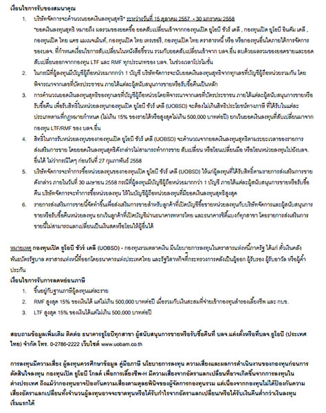 - รับเงินคืนแบบไม่จำกัด* (ยอดลงทุนสุทธิ RMF/LTF (ยกเว้น RMF4) ทุกๆ 50,000 บาท รับหน่วยลงทุน KTPLUS 100 บาท ตั้งแต่ 2 ม.ค.- 30 ธ.ค.57)