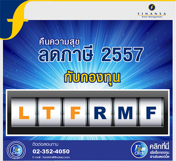 คืนความสุขลดภาษี 2557 - ลงทุนในกองทุน FAM LTF, FAM SET 100RMF, FAM RMF, FAM RSRMF ทุกๆ 50,000 บาท รับหน่วยลงทุน FAM VF มูลค่า 100 บาท
