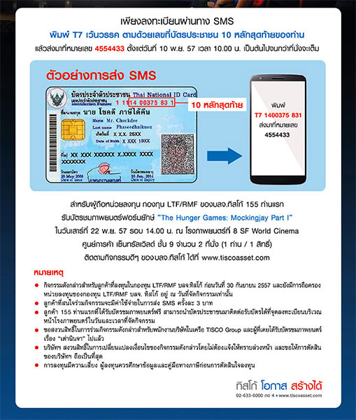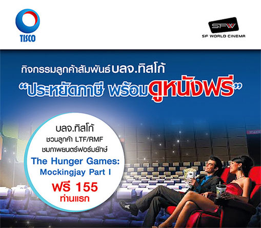กิจกรรมลูกค้าสัมพันธ์ บลจ.ทิสโก้ "ประหยัดภาษี พร้อมดูหนังฟรี" บลจ.ทิสโก้ ชวนลูกค้า LTF/RMF ชมภาพยนตร์ฟอร์มยักษ์ The Hunger Games : Mockingjay Part I ฟรี 155 ท่านแรก