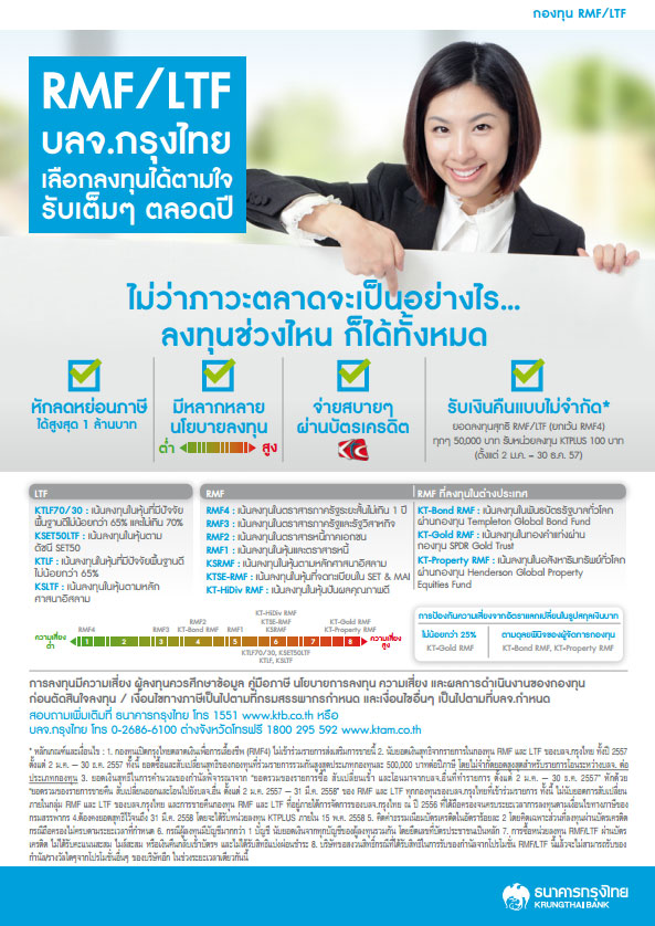 RMF/LTF บลจ.กรุงไทย เลือกลงทุนได้ตามใจ รับเต็มๆ ตลอดปี - หักลดหย่อนภาษีได้สูงสุด 1 ล้านบาท