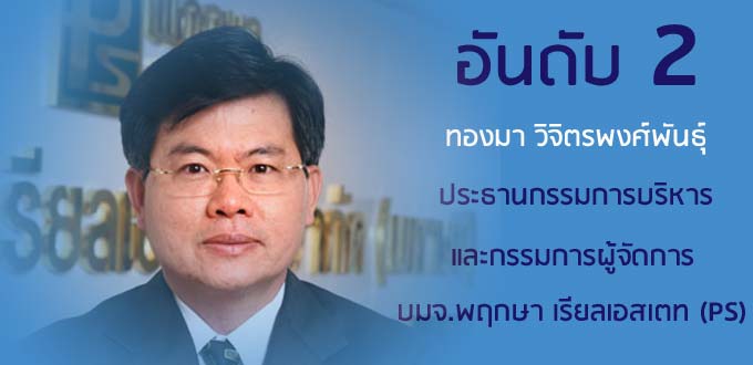 ทองมา วิจิตรพงศ์พันธุ์ บิ๊กบอสพฤกษากลับขึ้นมาเป็นเศรษฐีอันดับ 2 โดยมีมูลค่าหุ้น PS ที่ถือครองในสัดส่วน 54.59% รวมมูลค่า 41,579.50 ล้านบาท รวยเพิ่มขึ้น 16,126.15 ล้านบาท หรือ 63.36% เนื่องจากราคาหุ้น PS ได้ปรับสูงขึ้นมาอยู่ที่ 34.25 บาท ณ วันที่ 30 กันยายน 2557 ซึ่งเป็นวันที่ใช้คำนวณมูลค่าความมั่งคั่งของเศรษฐีหุ้นในปีนี้ จากที่หล่นไปแตะ 19.50 บาท เมื่อปีที่แล้ว โดยราคาปรับขึ้นมา 14.50 บาท หรือ 75.64%