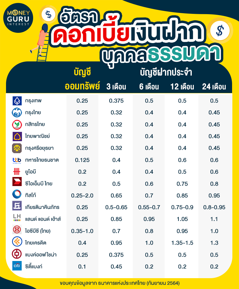 อัตราดอกเบี้ยเงินฝากสำหรับบุคคลธรรมดา