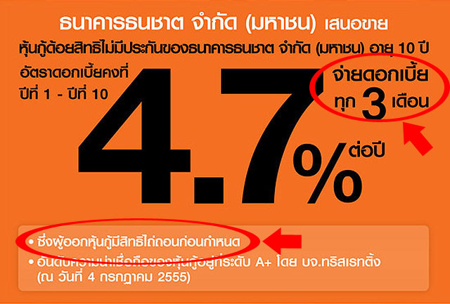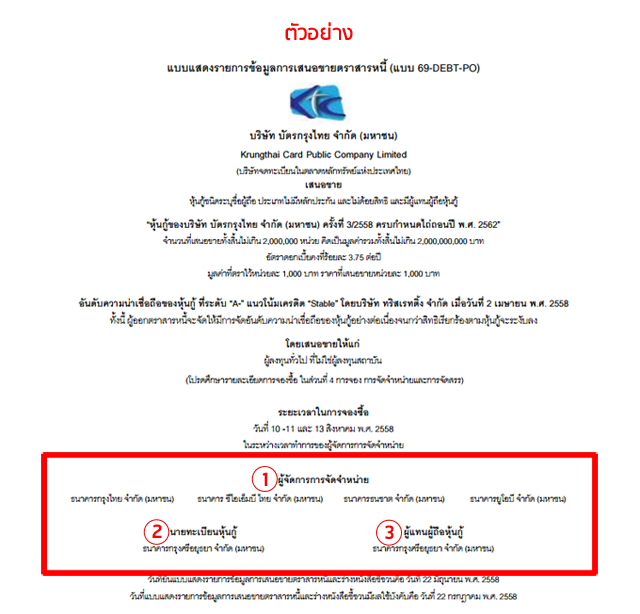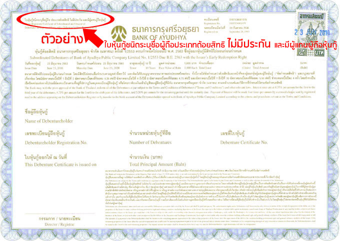 ตัวอย่างหุ้นกู้ประเภท "ไม่มีประกัน"