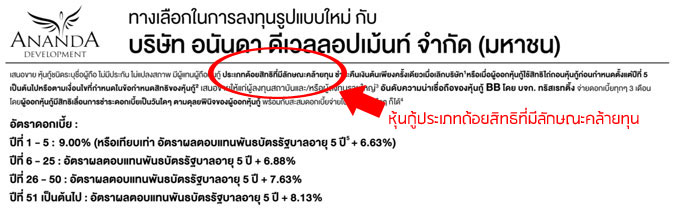 นอกจากนี้ สมัยนี้ก็มีหุ้นกู้ประเภท "ด้อยสิทธิที่มีลักษณะคล้ายทุน" ด้วย (เช่นที่ออกโดย Indorama เมื่อปีก่อน และอนันดาฯ ในปีนี้) ซึ่งโดยหลักการก็คล้ายกับที่อธิบายข้างบน แต่จะมีความเสี่ยงสำหรับคนซื้อเพิ่มอีกนิดคือ อายุหุ้นกู้อาจไม่มีกำหนดระยะเวลาคล้ายๆ กับเป็นหุ้นสามัญกลายๆ (Perpetual) และหุ้นกู้บางตัวก็ให้สิทธิแก่ผู้ออกหุ้นกู้ในการที่จะเลื่อนการจ่ายดอกเบี้ยออกไปได้แบบไม่มีกำหนดอีกด้วย (Interest Deferral) ซึ่งหากใครสนใจหุ้นกู้แบบนี้ คงต้องทำความเข้าใจความเสี่ยงเหล่านี้ให้ดีๆ ก่อนซื้อนะคะ