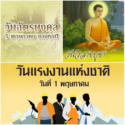 วันหยุดธนาคารเดือนพฤษภาคม 2559 (2, 5 และ 20 พฤษภาคม 2559)