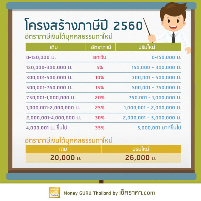 มนุษย์เงินเดือนเฮ!! โครงสร้างภาษีใหม่ 2560