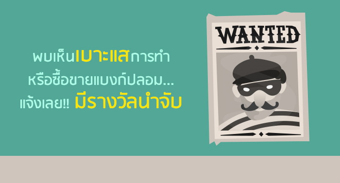 พบเห็นเบาะแสการทำหรือซื้อขายแบงก์ปลอม...แจ้งเลย!! มีรางวัลนำจับ