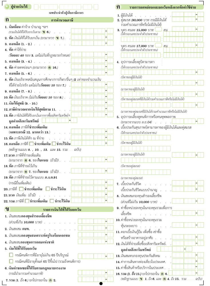 ตัวอย่างแบบแสดงรายการภาษีเงินได้บุคคลธรรมดา (ภ.ง.ด.91) พร้อมวิธีกรอกแบบแสดงรายการ