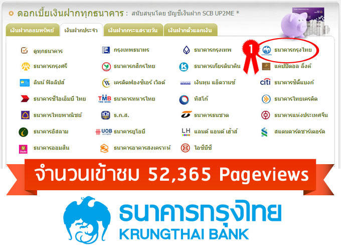 "บัญชีเงินฝากประจำ KTB Zero Tax MAX" ธนาคารกรุงไทย (KTB) ได้ถูกยกให้เป็นสุดยอดบัญชีเงินฝาก ที่มีคนให้ความสนใจคลิกเข้าไปดูผลิตภัณฑ์มากที่สุดเป็นอันดับ 1 ในปี 2559 ตั้งแต่เดือนมกราคม - ธันวาคม ที่ผ่านมา โดยมีคนเข้ามาดูถึง 52,365 Pageviews จากบรรดาบัญชีเงินฝากทั้งหมดของทุกธนาคาร