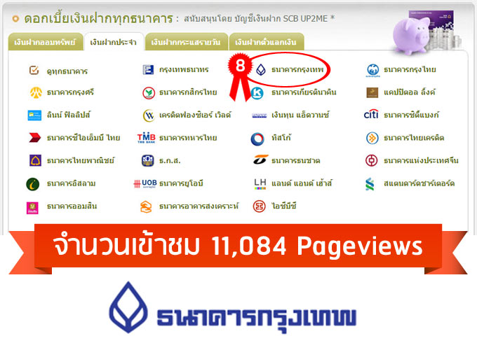 ในปีนี้ "บัญชีฝากประจำสินมัธยะทรัพย์ทวี" ธนาคารกรุงเทพ (BBL) ก็เข้ามาเป็นอันดับที่ 8 ซึ่งมีจำนวนถึง 11,084 Pageviews จะเห็นได้ว่าธนาคารกรุงเทพ ก็ยังคงได้รับความนิยมเหมือนเช่นเคย ซึ่งดูได้จากการจัดอันดับ ไม่ว่าปีไหนๆ ธนาคารกรุงเทพก็ยังคงมีตำแหน่งอยู่ทุกปี