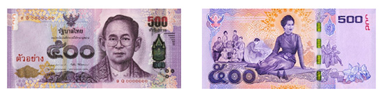 ขนาด - ขนาด ๗๒ x ๑๕๖ มิลลิเมตร ชนิดราคา ๕๐๐ บาท จ่ายแลกในราคา ๕๐๐ บาท