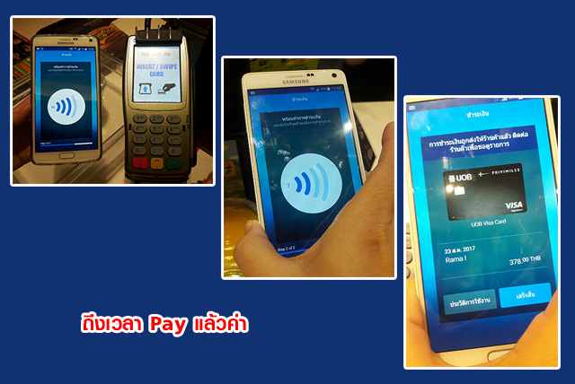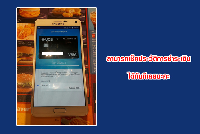 เราสามารถใช้ UOB Mighty นี้ได้กับเครื่องรับชำระที่มีสัญลักษณ์ VISA Paywave และ Mastercard Paypass นะคะ อันนี้ต้องให้ผู้ใช้งานทำความเข้าใจกันนิดนึงนะคะ สำหรับแอพพลิเคชั่นของ UOB Mighty เป็นแอพฯ ที่ใช้งานผ่านระบบ NFC สามารถใช้ได้กับโทรศัพท์ Andriod ทุกยี่ห้อที่รองรับ NFC ค่ะ ซึ่งแตกต่างจาก Samsung Pay ที่ใช้งานได้เฉพาะโทรศัพท์ Samsung บางรุ่นเท่านั้น และในการ Tab หรือ แตะเครื่องโทรศัพท์กับอุปกรณ์รับชำระเงินก็ไม่ควรมีอะไรมาบดบังสัญญาณด้านหลังเครื่องนะคะ เช่น หากเครื่องโทรศัพท์ของใครใส่เคสที่มีแหวนมือถือด้านหลังก็ต้องรบกวนถอดเคสออก เพื่อความสะดวกในการใช้งาน เพราะสัญญาณจะส่งจากด้านหลังของโทรศัพท์มือถือของเราเข้าเครื่องเพื่อชำระเงินค่ะ และในการชำระเงินเราต้องกดรหัสผ่าน Wallet PIN เพื่อทำการยืนยันว่าเราต้องการชำระเงินจริง