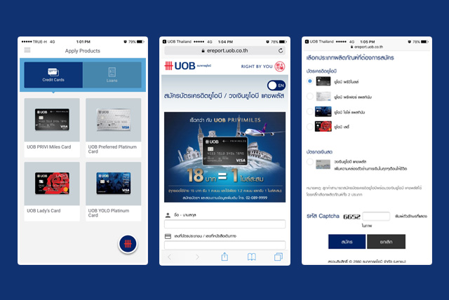 - บริการอื่นๆ : สามารถเปิดใช้บัตรเครดิตผ่านแอพพลิเคชั่น UOB Mighty ได้