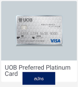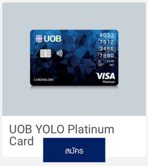 1. บัตรเครดิต จะมีให้เลือกสมัคร 4 ประเภทบัตร ได้แก่ UOB PRIVI Miles Card, UOB Preferred Platinum Card, UOB Lady's Card, UOB YOLO Platinum Card