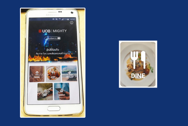 แอพพลิเคชั่น UOB Mighty จากคำจำกัดความ "กิน-จ่าย-โอน แอพเดียวครบ จบที่ MIGHTY" 3 บริการ กับ 5 Icon (ฺBank, Dine, Deals, Pay, Apply) ไปดูกันค่ะว่ามีความน่าสนใจอย่างไรบ้าง
