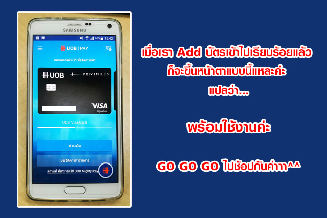 หลายๆ ท่านคงเคยใช้บริการ Samsung Pay กันมาบ้างแล้วนะคะ ซึ่งผู้เขียนเองก็ได้ลองใช้มาบ้างแล้ว ยืนยันว่าสะดวกสบายมากเลยค่ะ และสำหรับแอพพลิเคชั่นของ UOB Mighty เพียงแค่มีโทรศัพท์ Andriod ยี่ห้ออะไรก็ได้ค่ะ ขอเพียงเป็นรุ่นที่รองรับ NFC ก็สามารถใช้บริการ Pay แบบ Contactless Payment ได้เลย ไม่จำเป็นต้องพกบัตรเครดิต บัตรเดบิต หรือแม้แต่ลืมกระเป๋าสตางค์ ก็สามารถใช้จ่ายได้อย่างสะดวกสบายแล้วค่ะ