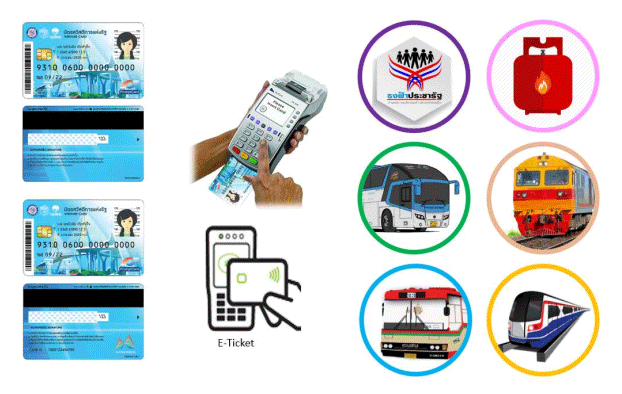 ใช้สิทธิ์ด้วยตนเอง 1 คนต่อ 1 บัตรต่อ 1 สิทธิ์ ใช้ชำระค่าโดยสารรถ ขสมก. (ระบบ e-Ticket) / รถไฟฟ้า ได้ 500 บาทต่อเดือน โดยไม่จำกัดจำนวนครั้งในการใช้สิทธิ์